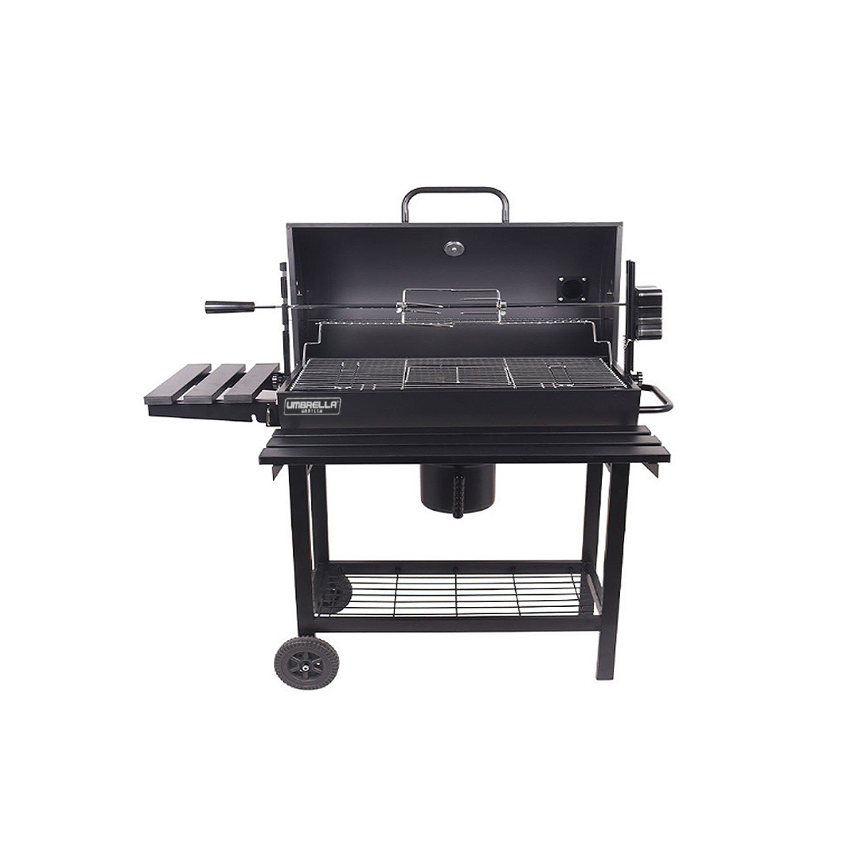 🔥 Parrilla de carbón tipo trolley con espiedo giratorio