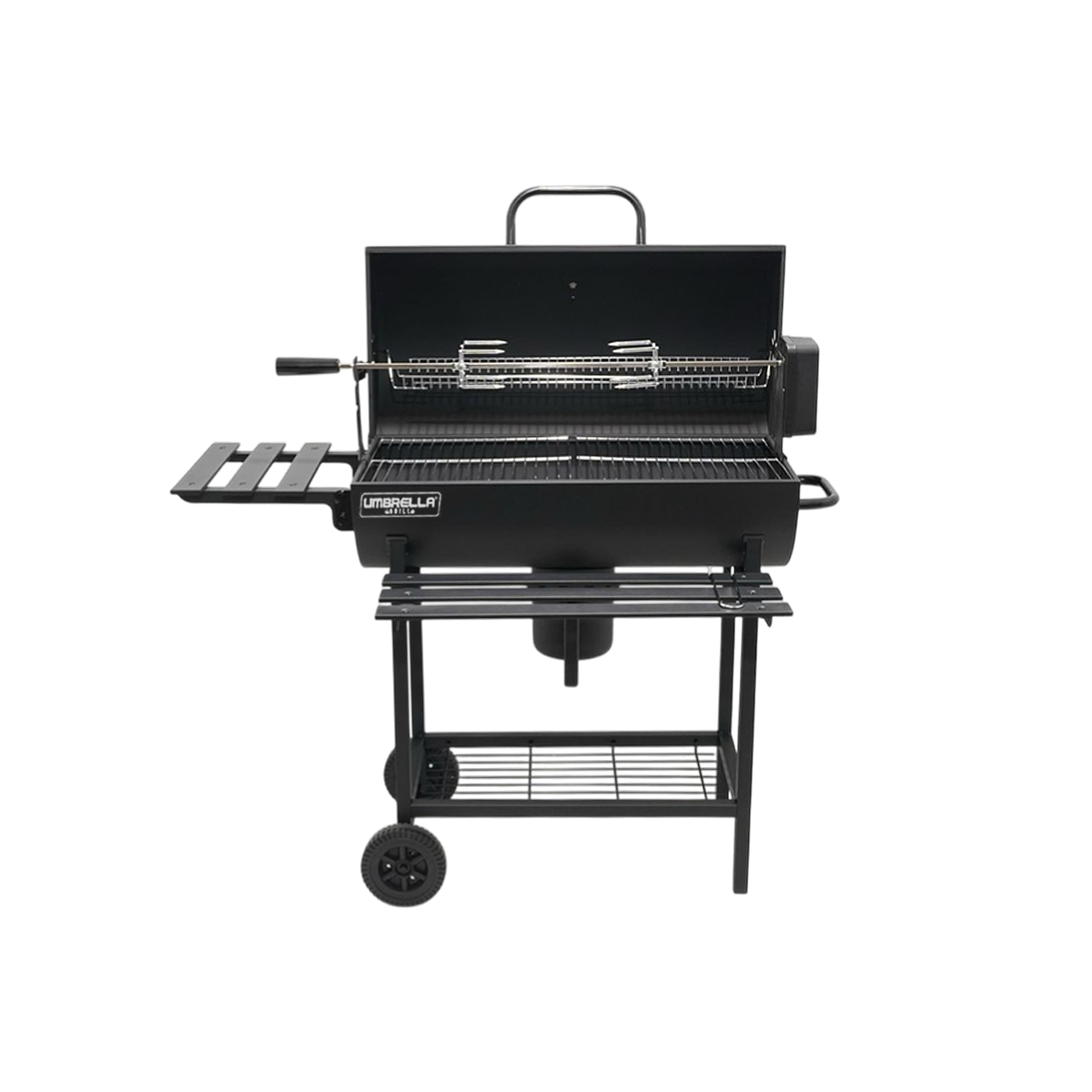 Diseñada para verdaderos amantes del asado, la Parrilla BBQ KY740A-1 incorpora un diseño robusto con espiedo giratorio que permite una cocción pareja y jugosa, ideal para carnes enteras, pollos o cortes grandes. Su amplia parrilla cromada, bandeja lateral y tapa ventilada te ofrecen una experiencia completa de parrillado con estilo profesional.