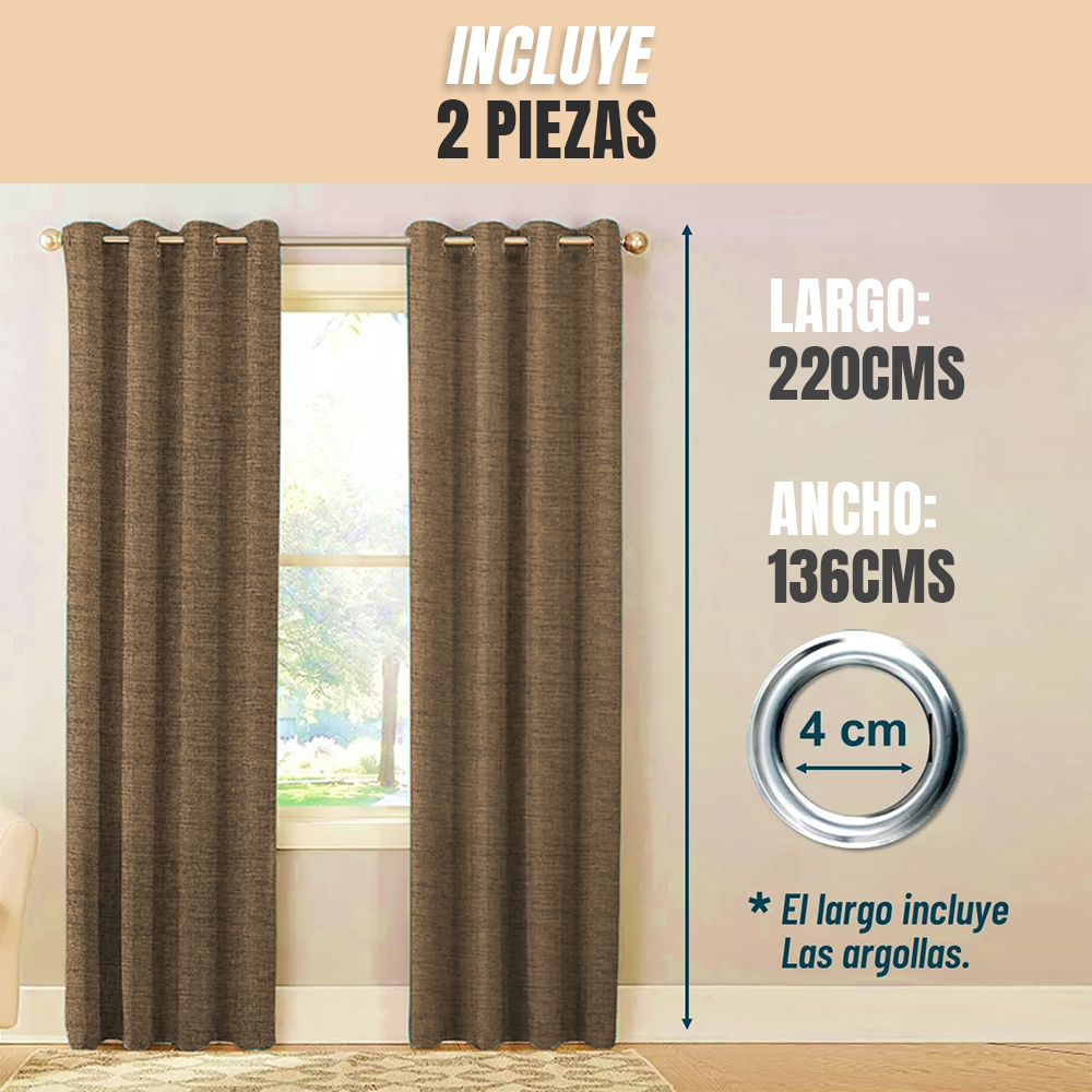Cortina Cafe Blackout 100%, 2 Paños De 220x140cm Textura ...