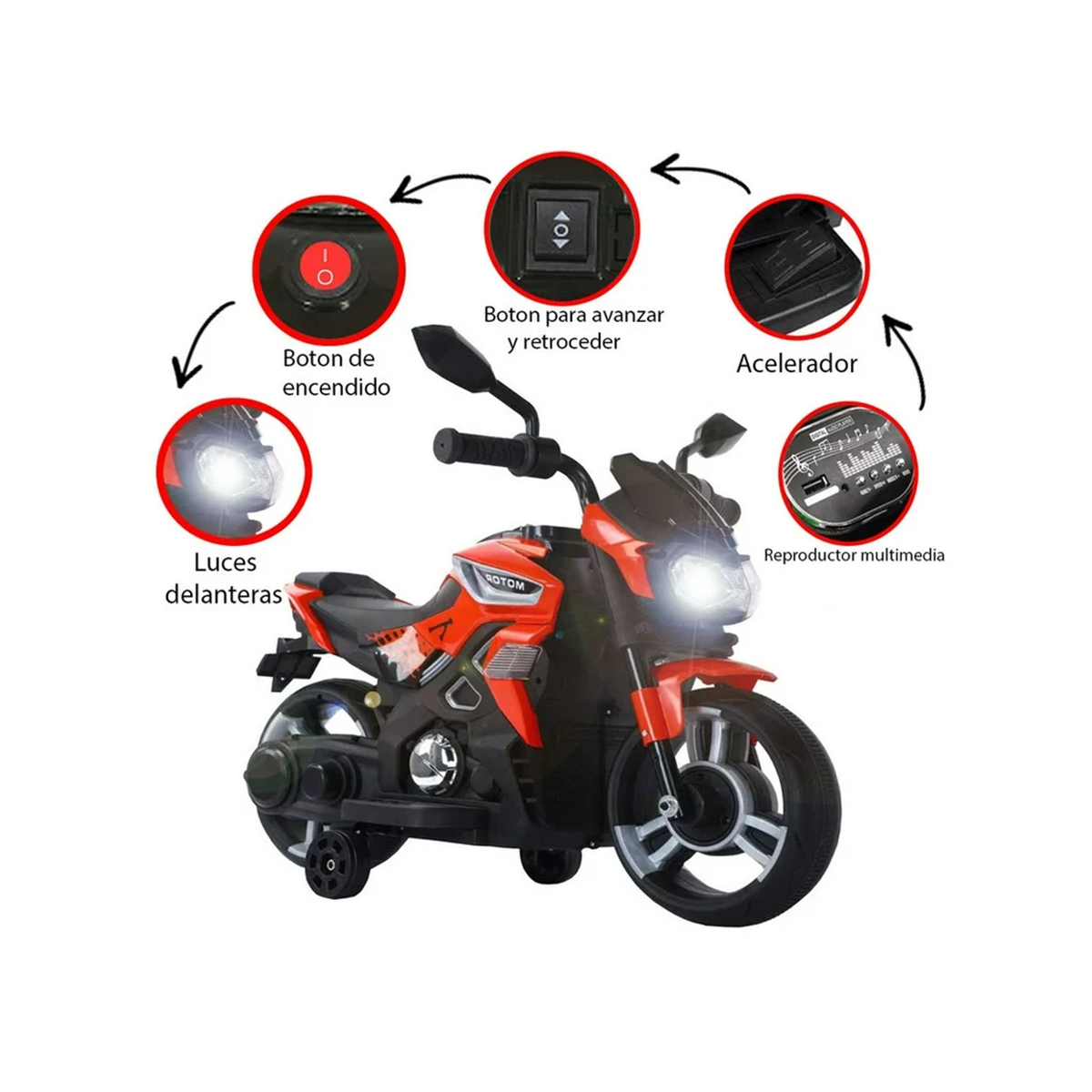 🏍️ Moto Eléctrica pequeña para Niños ROJA – 6V 1 Motor + Música y MP3