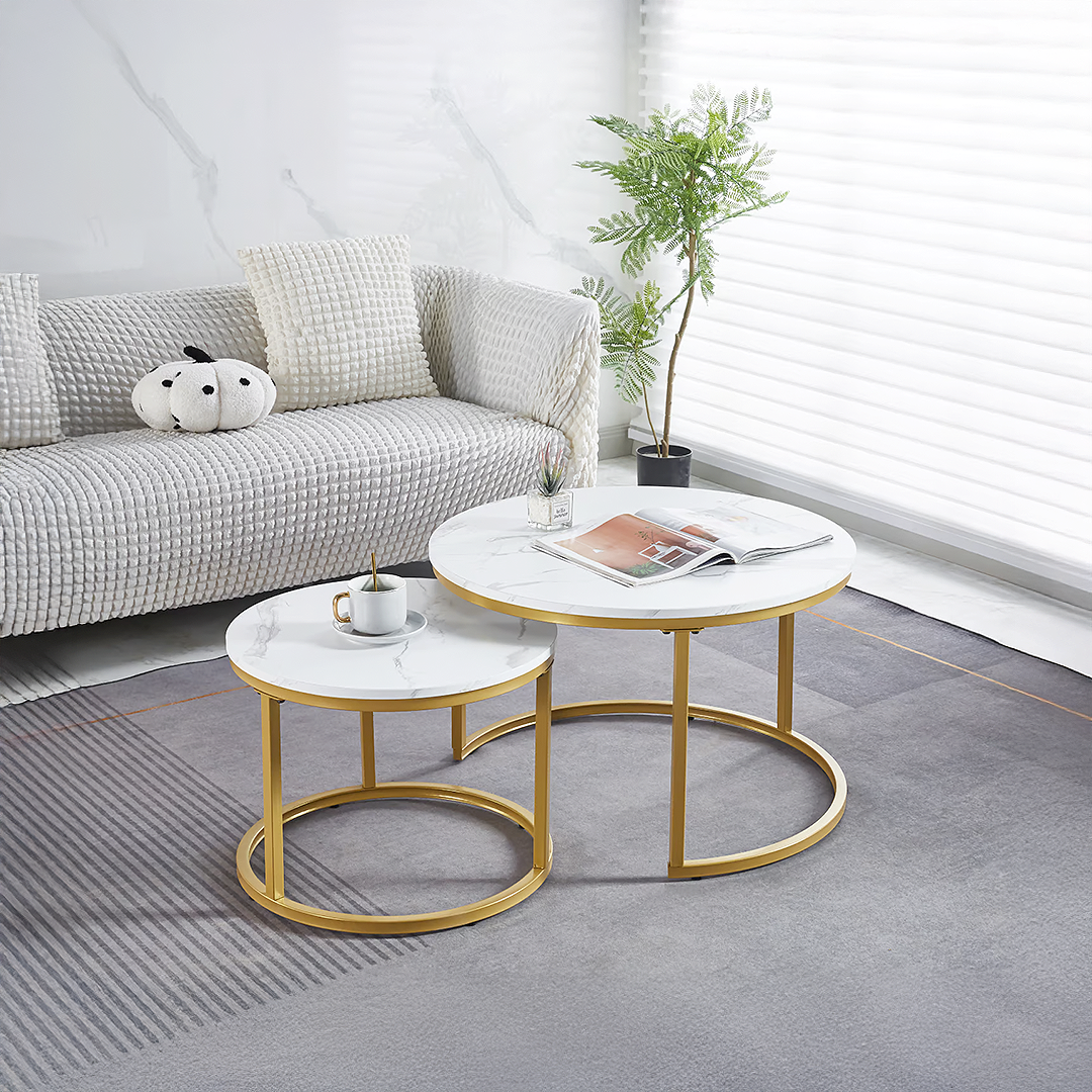 • 🪵 Set de 2 mesas de centro nido con cubierta efecto mármol