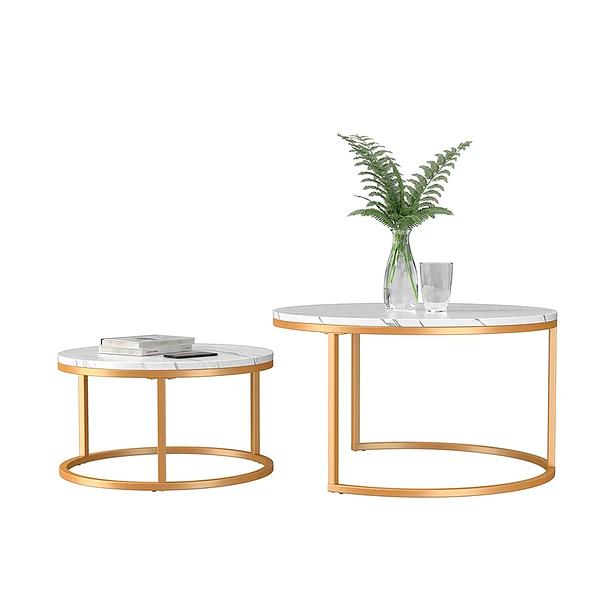 Mesa de Centro Nido 2 Piezas Cubierta Marmolada 50/70 cm