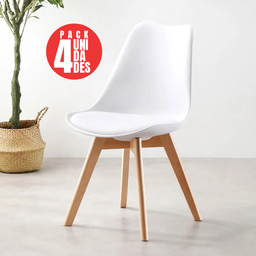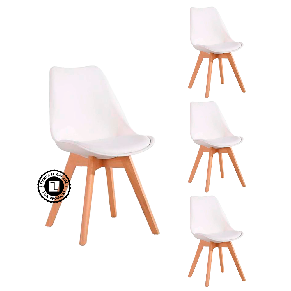Pack 4 Sillas Acolchadas Eames Blanca - Silla de diseño m...