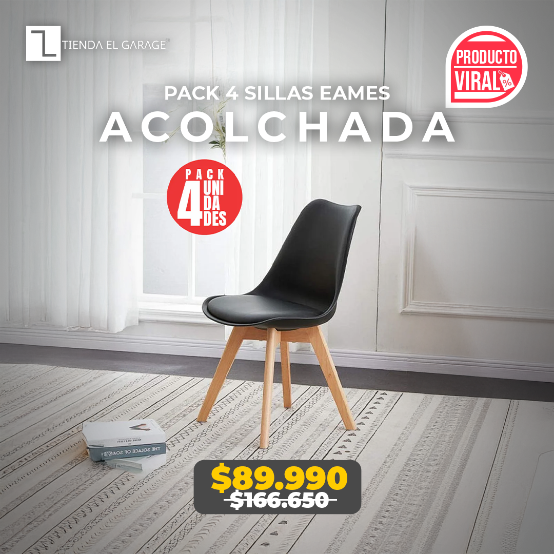 Pack 4 Sillas Acolchadas Eames Negra - Silla de diseño mo...