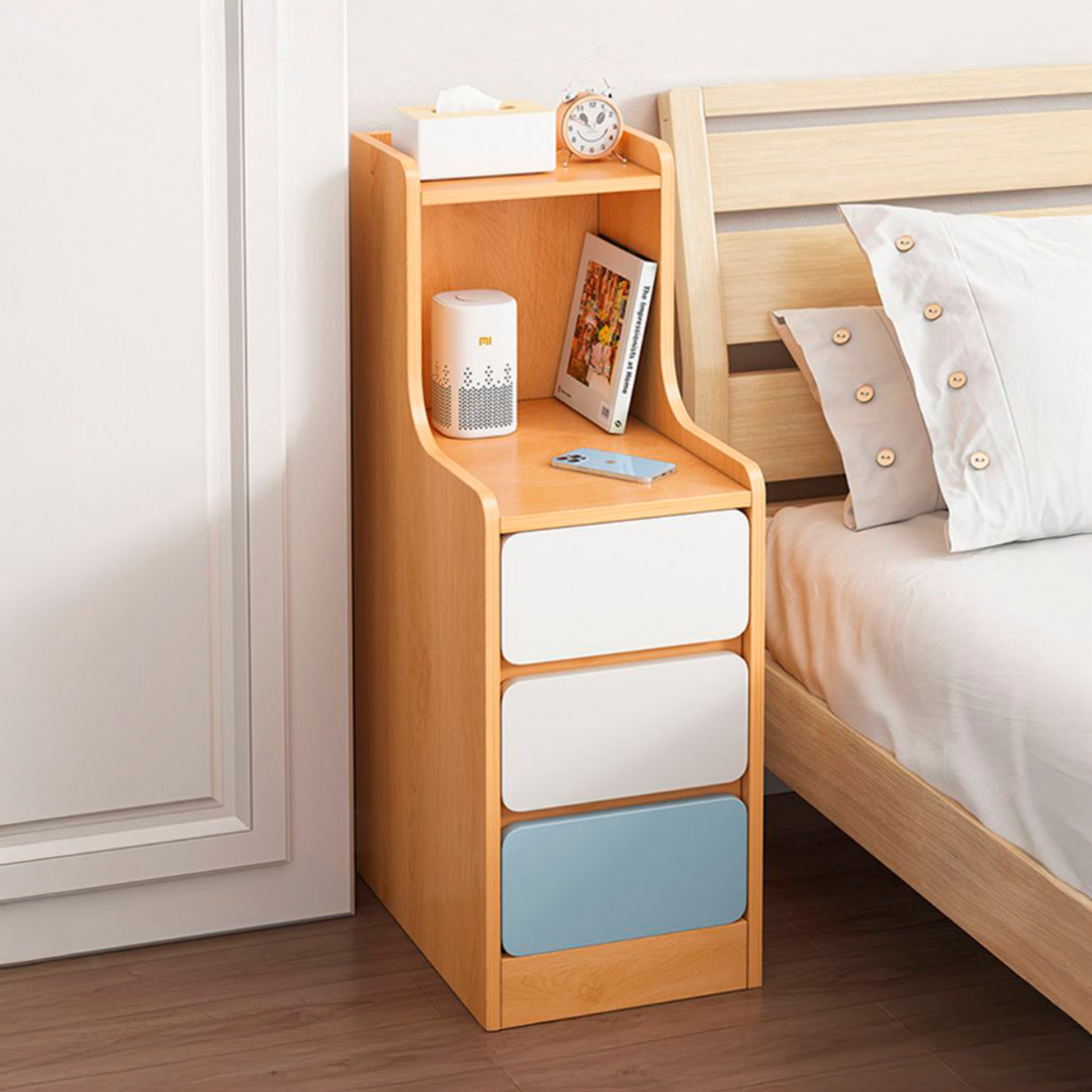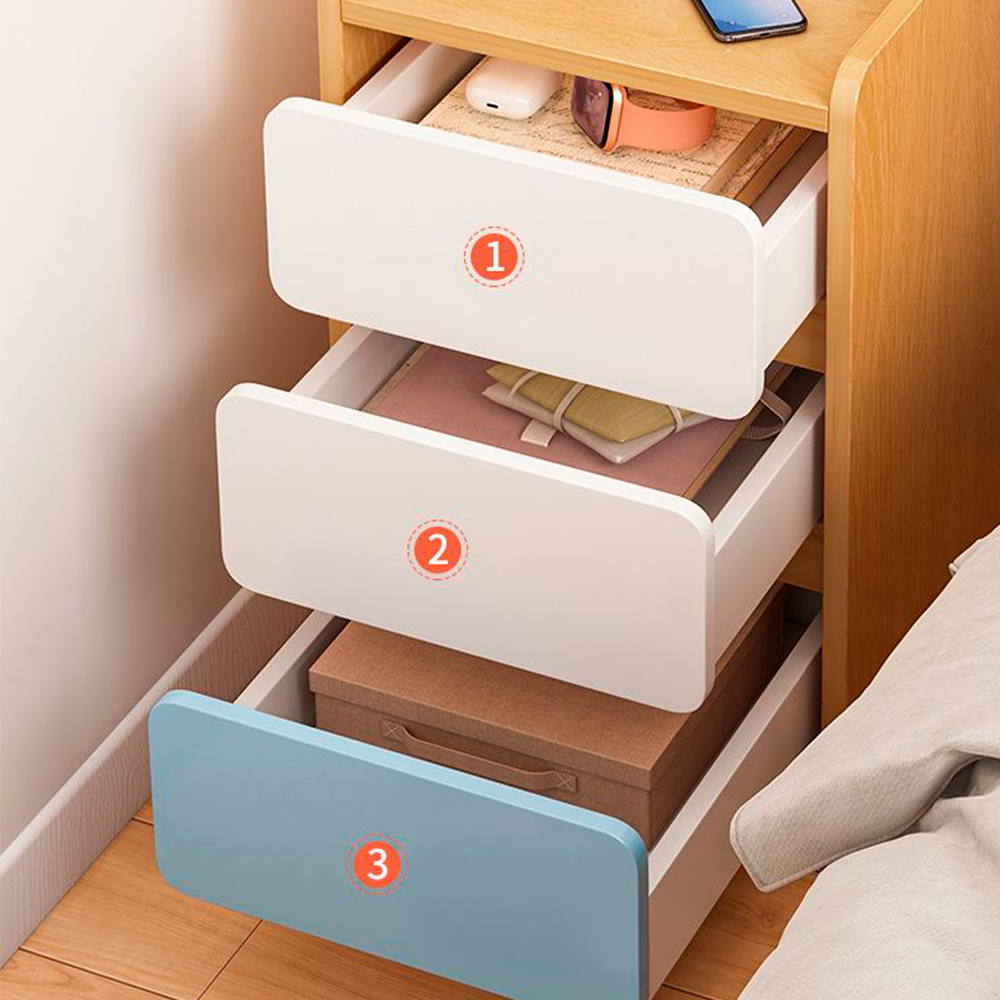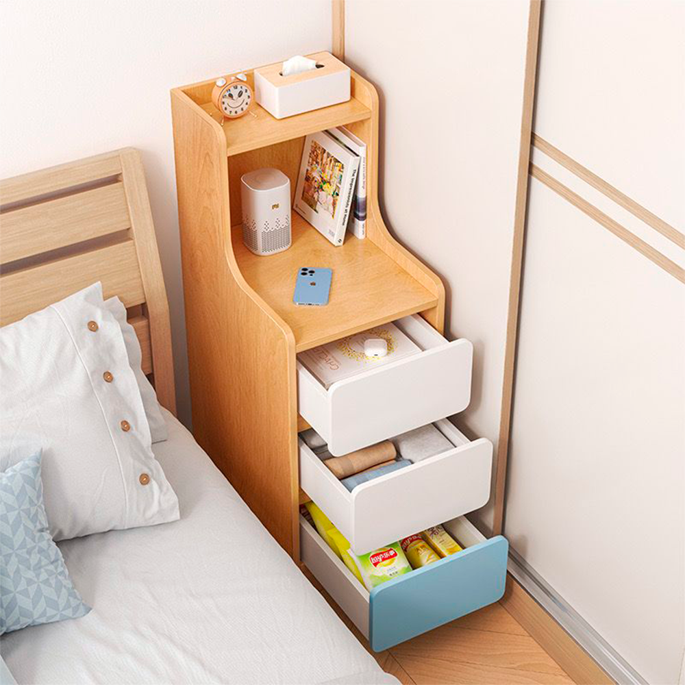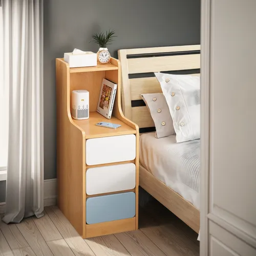 • 🪵 Velador angosto con 3 cajones funcionales