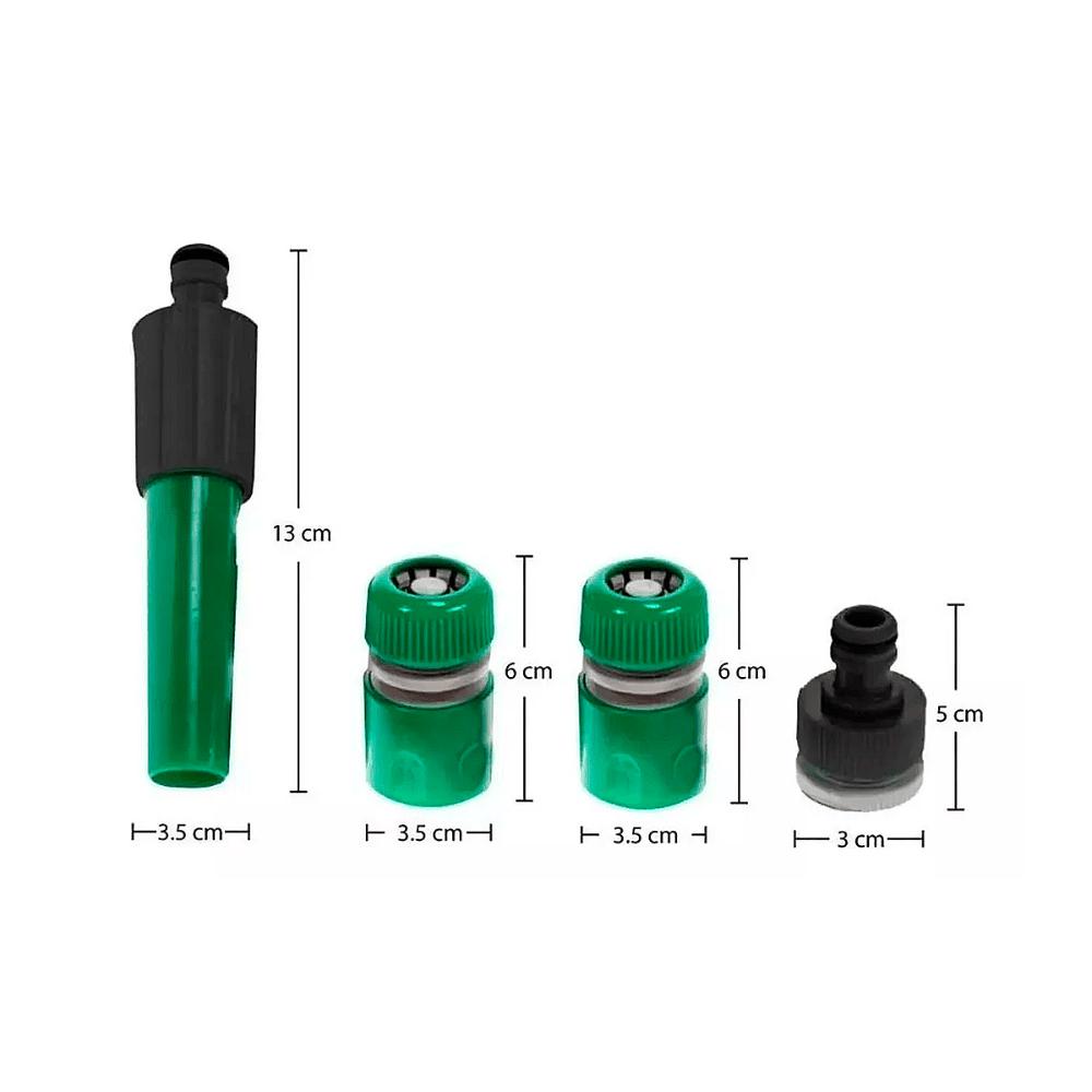 Su diámetro de 1/2” es compatible con grifos estándar, y el set incluye todo lo necesario para conectarla y empezar a usarla: pistola, adaptador y acoples rápidos.