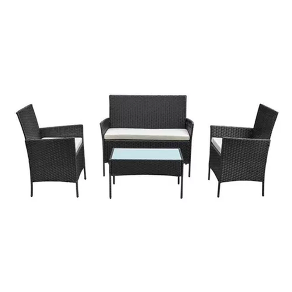 Este elegante juego de muebles de exterior de rattan negro incluye cuatro piezas, perfectas para transformar su terraza en un espacio acogedor y moderno. Su diseño contemporáneo y resistente a las inclemencias del tiempo garantiza durabilidad y estilo, mientras que los cojines acolchados ofrecen comodidad para disfrutar de momentos al aire libre. Ideal para reuniones familiares o relajarse en solitario, este conjunto es la elección perfecta para cualquier ambiente exterior.