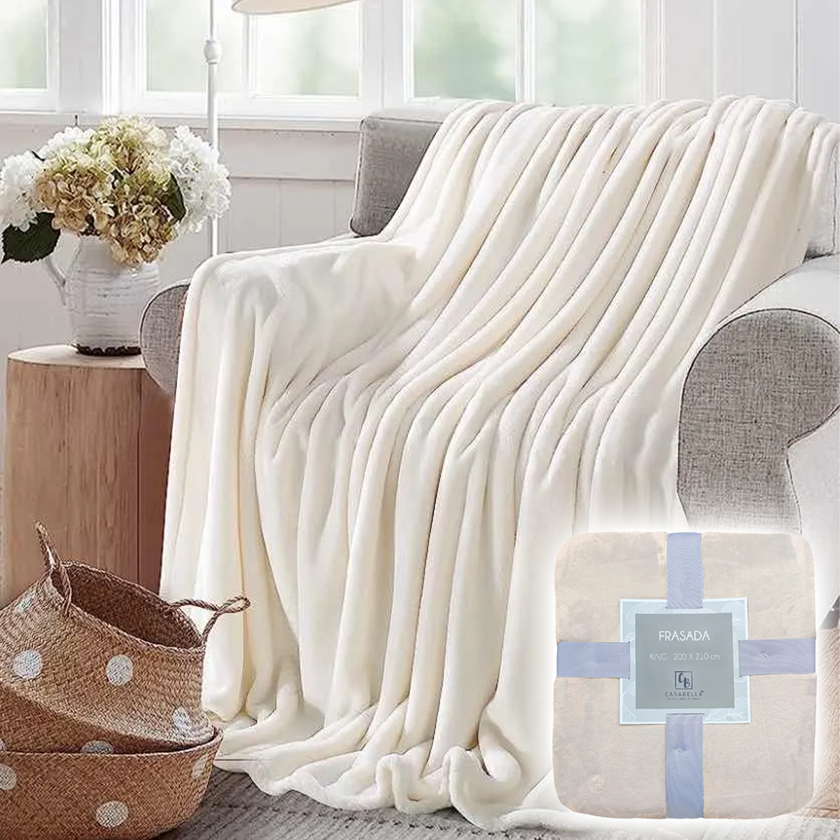 FRAZADA MANTA POLAR 240 GSM KING SIZE 200*210 CASA BELLA CREMA